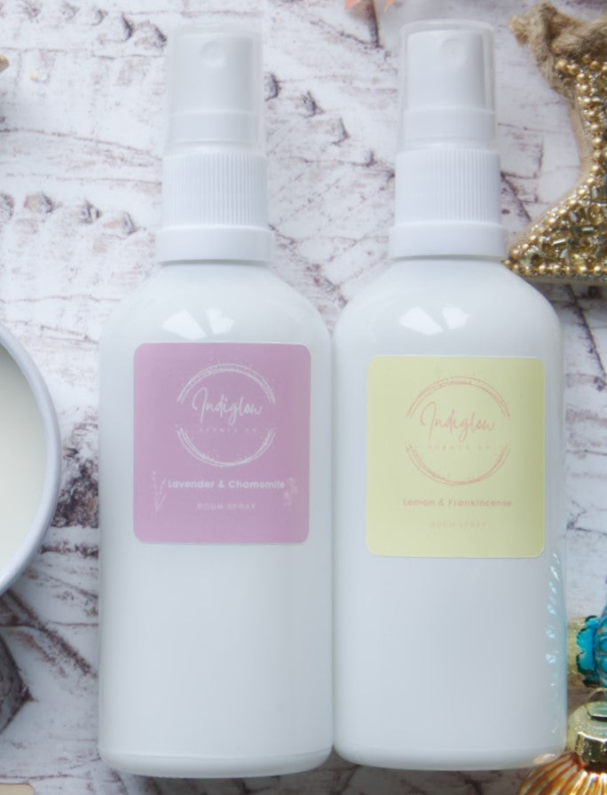 Indiglow Scents Co. Room Sprays contain essential oil blends to refresh and rejuvenate a space and naturally improve the ambience. Our room sprays are an instantaneous and lovely way to scent your home.